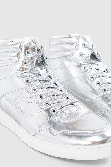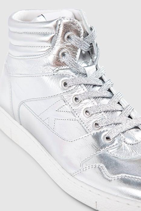 SILVER METALLIC LEATHER HIGH-TOP TRAINERS