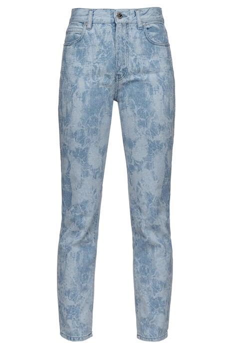 Slim-Fitting, Five-Pocket Jeans In Marble-Effect Denim, With Transparent-Rhinestone Appliqué On The Front. High Waist With Belt Loops And Straight, Snug-Fitting Legs. Metal Zip And Tack Button Fastening.