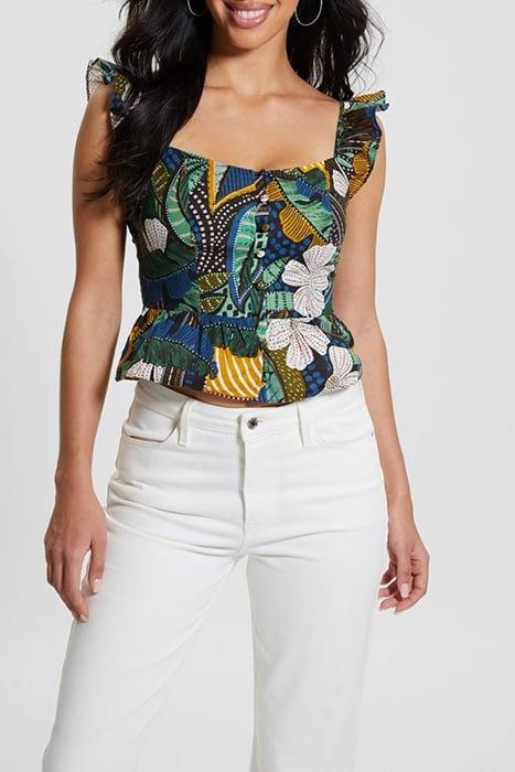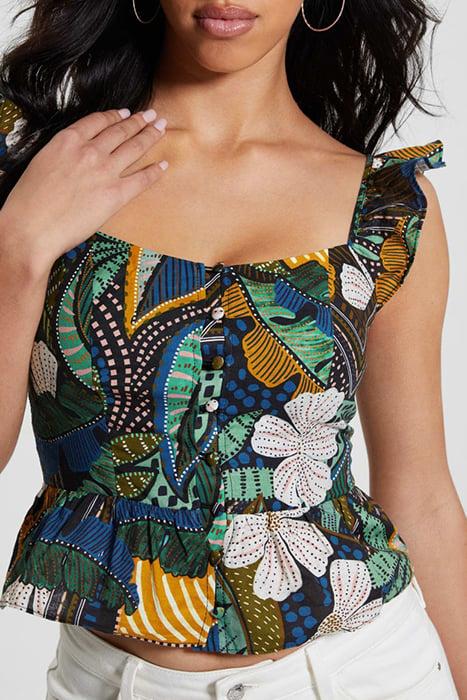 SL CARINE PEPLUM TOP TROPICAL TRAVELER