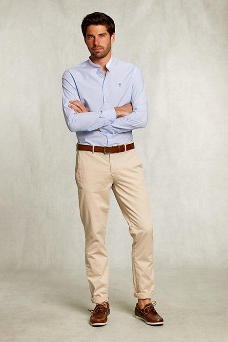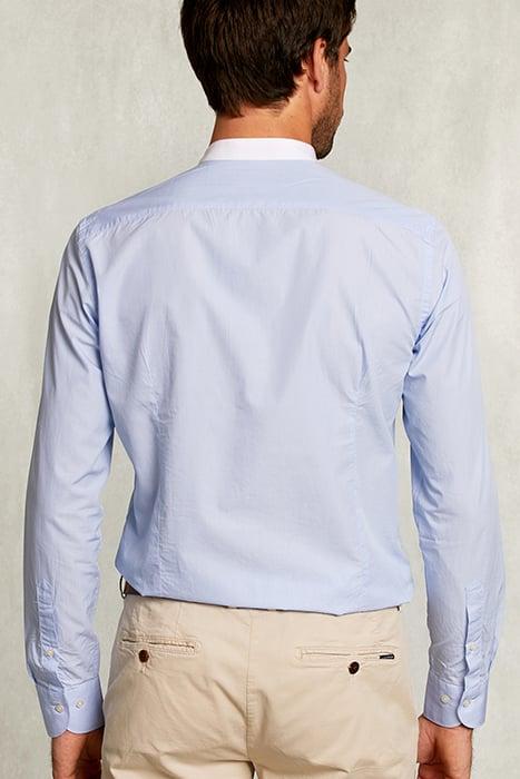 SLIM FIT STRIPED SHIRT HENLEY COLLAR BLUE/WHITE BLUE