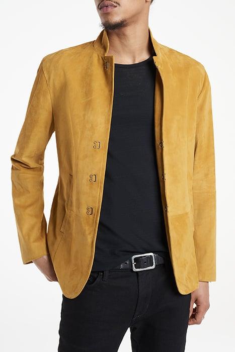SLIM FIT SUEDE JACKET WITH HOOK AND BAR HONEYSUCKLE