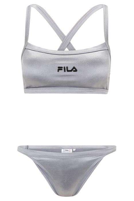 Bikini Set In A Shiny Quality. Bralette Shaped Top With A Staight Neckline, Darts On The Sides For Better Support And Shape And With Adjustable Straps. Combined With A Pair Of Brazilian Bottoms.