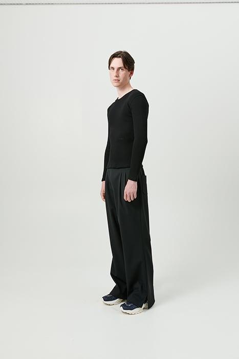 Star Is A 2X2 Ribbed Tight Fitted Crew Neck Long Sleeve Top