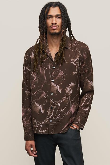 Kinney Shirt - Straight Bottom Hem Shirt With Regular Collar- Japanese Abstract Animal Printed Fabric - 100% Polyester