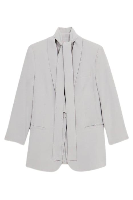 Stretch Flowing Crepe Fabric Blazer, Covered Button Fastening, Sash To Be Tied At The Waist