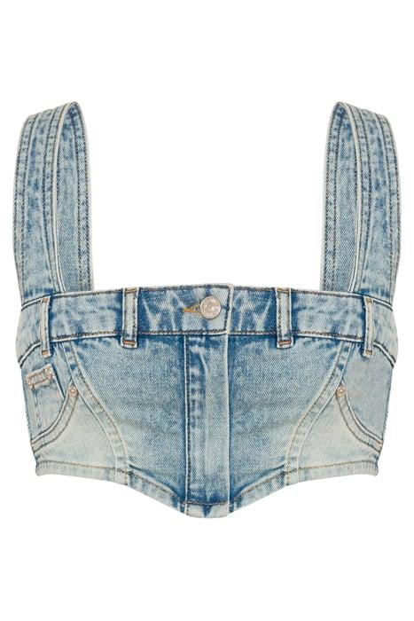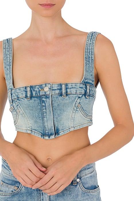 STRETCH DENIM CROP TOP BLUE