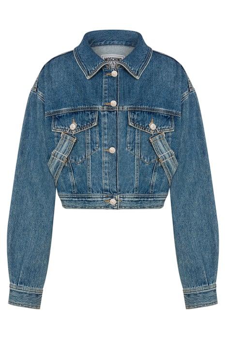 SUSPENDERS CROPPED DENIM JACKET BLUE