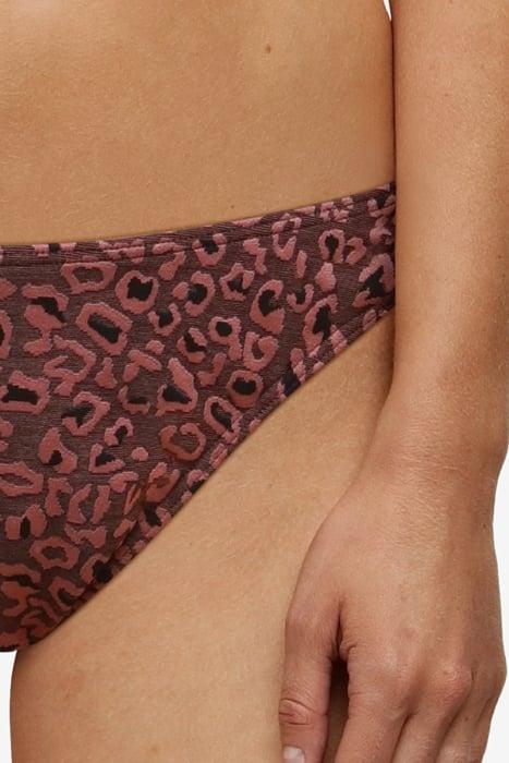 Beautiful High Leg Bikini Pants From The Leopard Structure Line From Livera. This Bikini Pants Are Worn High In The Waist And Is Cut Deep, This Provides An Extra Seductive Look. The Pants Have A Beautiful Texture Fabric In An Animal Print.