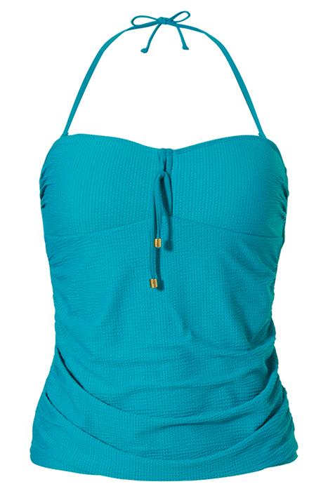 The Becky Tankini From The Lapis Line Has A Wrinkled Side Building And A Nice Detail Between The Cups. The Beautiful Color Is A Must -Have This Summer.