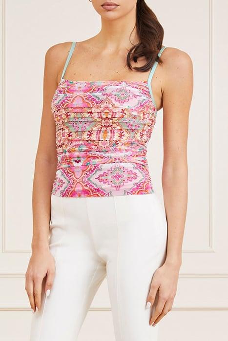 Chic, versatile, and undeniably stylish—the Talitha Mesh Top Tile Print is your go-to for elevating any look.