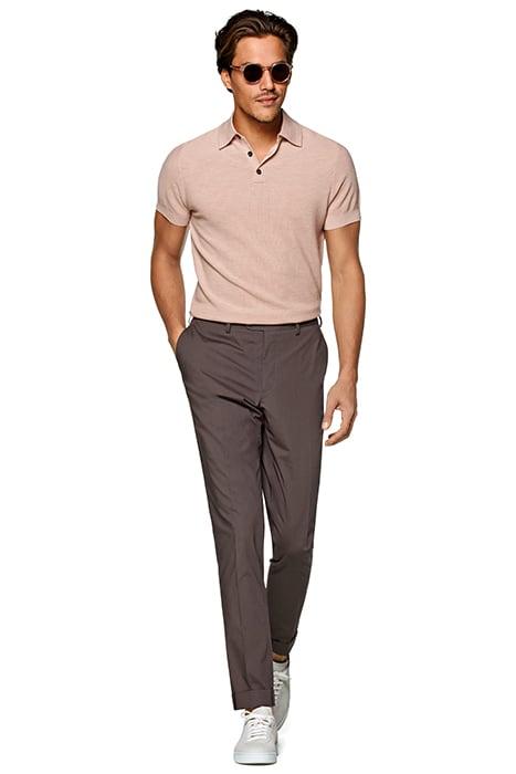 •These lightweight taupe Soho trousers are tailored to a slim fit with a flat front leg, and are cut from pure, breathable Italian cotton.