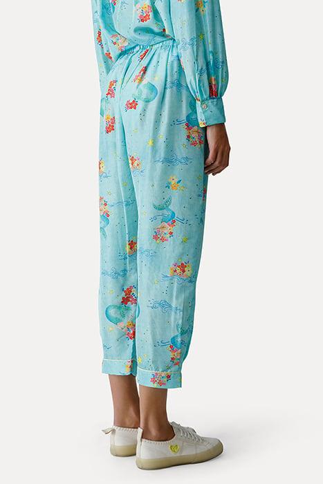 "THE MERMAIDS SONG" PRINT HABOTAI SILK PANTS ACQUA