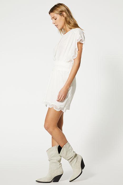 • WP33THRAEL-WHI01• Short dress• Lace braids• Marked waist• Round neck• Pleats• 71% Viscose 29% Silk• Made in China
