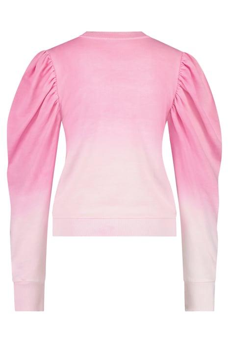 The Tive Runs From White To Pink. The Tive Has A Puffed Sleeve And Ribbed Band At The Bottom.