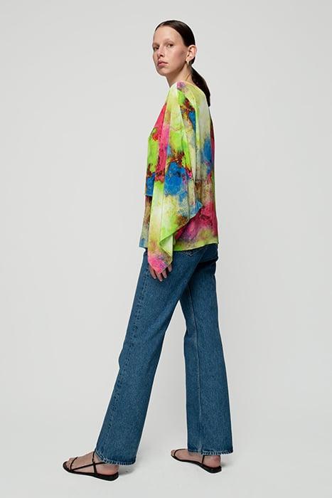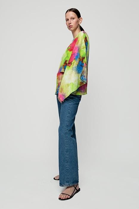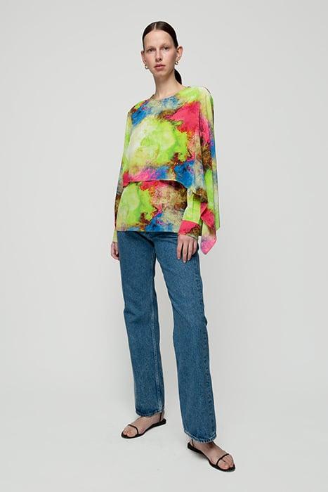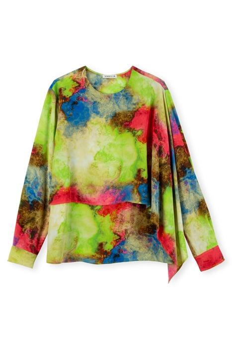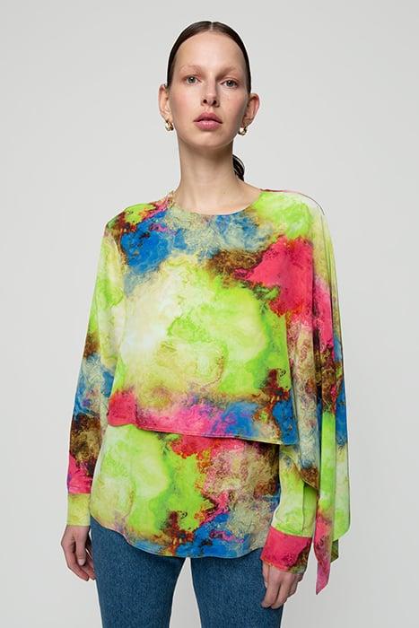 The extra layer on this straight-fit blouse creates an elegant drape. Pair with flared jeans and summer sandals.