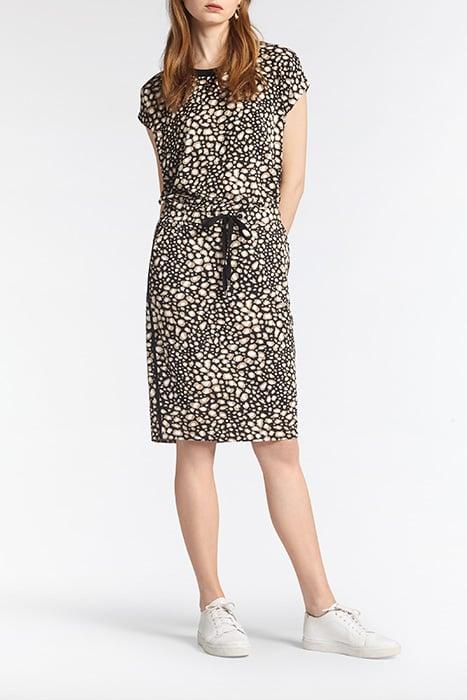 Een T-shirt met all-over grafische print van stretch-kwaliteit. De top is voorzien van kort aangeknipte mouwen en een elastisch gestreepte lurex bies op de hals.