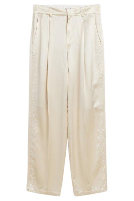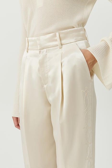 Ula Is A Straight-Cut Pants, With Deep Front Pleats, And Press Folds, Lined At Front To Knee. Waistband With Belt Loops And Hook And Eye Closure. Slanted Pockets At Front And Welt Pocket At Back. Tonal Embroidery Along The Side Seams.