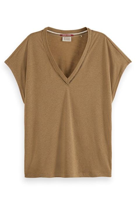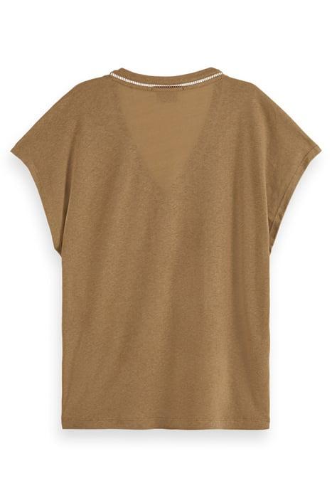 V-NECK LADDER DETAIL LOOSE FIT T-SHIRT LIGHT ARMY