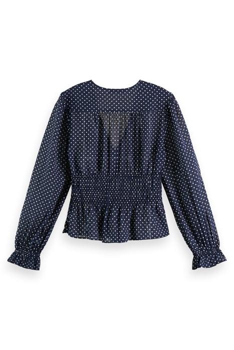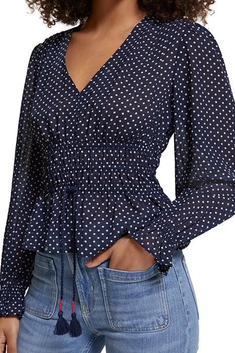 V-NECK TOP WITH ELASTIC WAIST POLKA NAVY BLUE