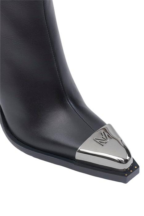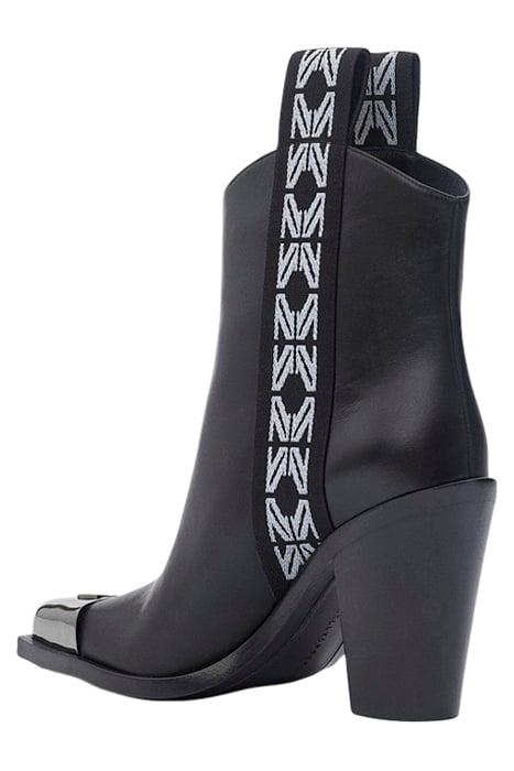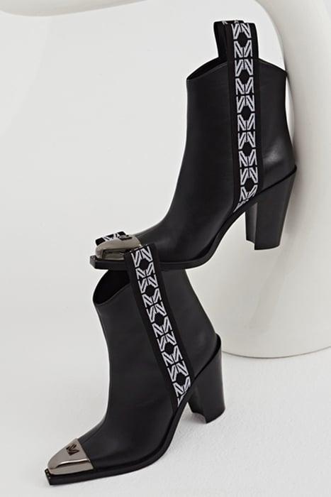 Black Smooth Leather Ankle Boots. Elastic Logo Sides For Easy Slip In And Metallic Toe Cap.