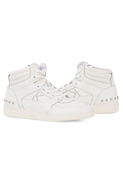 WHITE LEATHER TRAINERS WITH STUD DETAILS