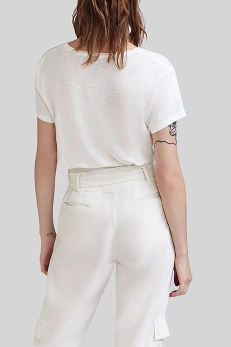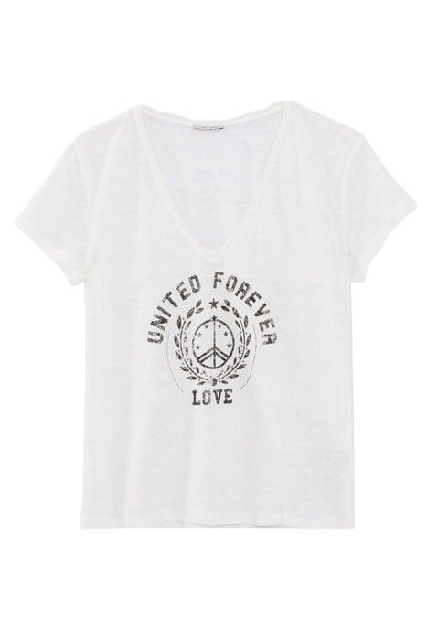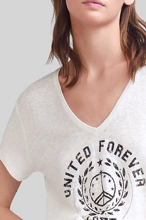 WHITE T-SHIRT WITH PEACE SYMBOL BADGE