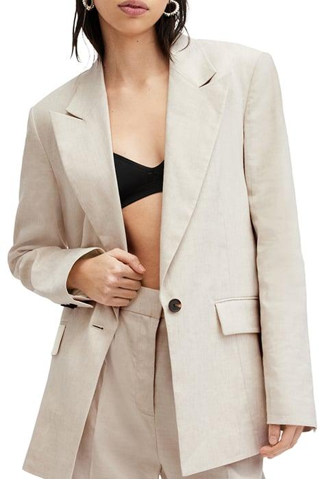 Whitney Blazer Neutral Beige. Blending classic craftsmanship with modern textures, the Blazer in Beige offers an elevated take on casual dressing. Whether dressed up or down, this Blazer promises to be a go-to staple season after season.