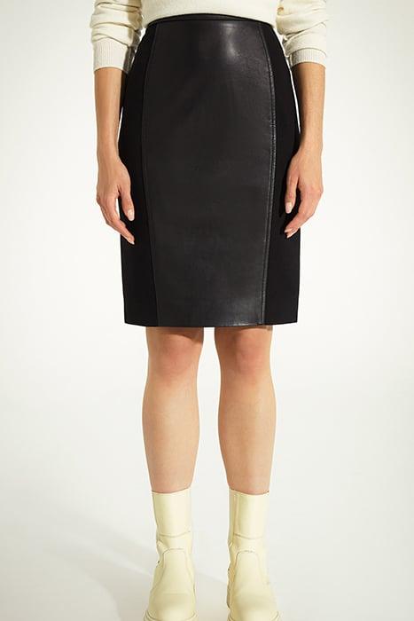 WOMEN'S PENCIL SKIRT COLOR BLACK BI-MATERIAL LEATHER AND VIS