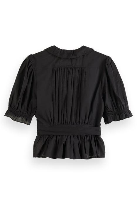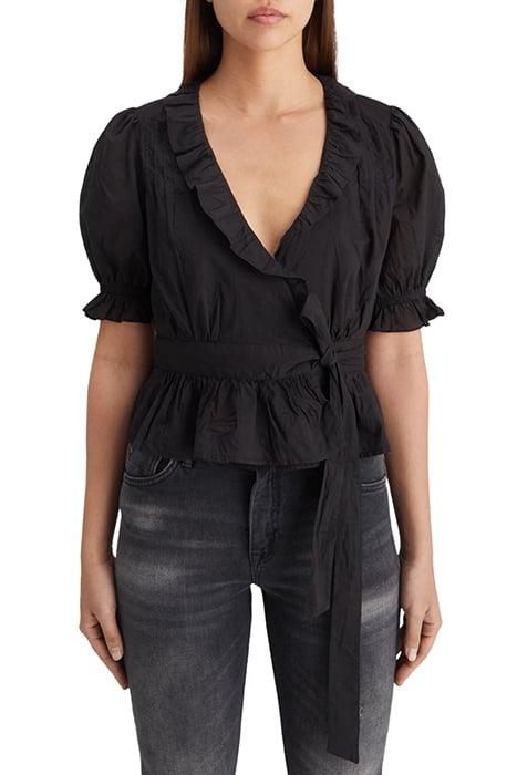 WRAP TOP WITH RUFFLE DETAIL EVENING BLACK