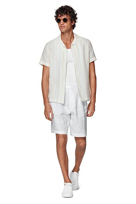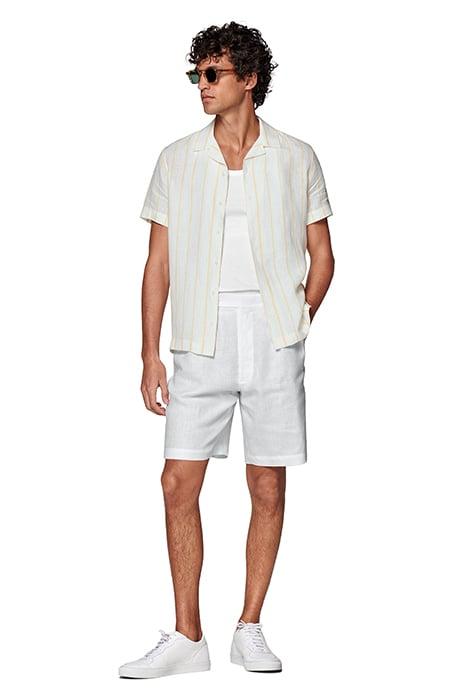 YELLOW STRIPED CAMP COLLAR SLIM FIT SHIRT